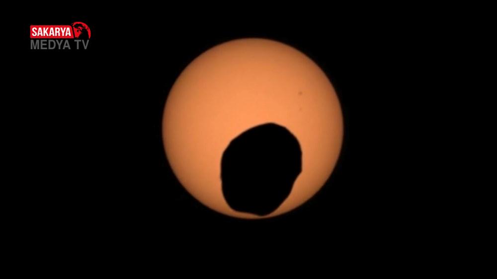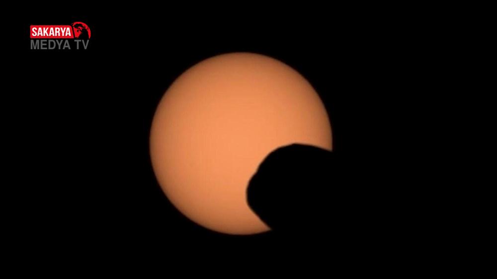 NASA’nın Perseverance keşif aracı, yakın vakitte gerçekleşen bir Güneş tutulması sırasında Güneş’in önünden geçen Phobos’u yakaladı. Mars’ın uydusu Phobos, direkt Güneş ile Mars yüzeyindeki bir noktanın ortasından geçerek Güneş diskinin büyük bir kısmını gizledi. Mars uydusu Güneş’in üzerinden geçerken gölgesi de gezegenin yüzeyinde hareket etti.