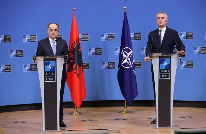 NATO Genel Sekreteri Jens Stoltenberg, Arnavutluk Cumhurbaşkanı Bayram Begay ile NATO karargahında görüştü. Jens Stoltenberg, basın toplantısında İsveç ve Finlandiya’nın NATO katılım protokollerine Macaristan’ın onay süreci hakkındaki soruyu yanıtlarken iki ülkenin NATO üyeliğinin kendisi için öncelik olduğunu belirtti. Cumhurbaşkanı Recep Tayyip Erdoğan ile geçen ay Türkiye, İsveç ve Finlandiya arasındaki görüşmelerin yeniden başlatılması konusunda mutabık kaldıklarını hatırlatan Stoltenberg, bu hafta görüşmenin Brüksel’de yapılacağını, temmuzda imzalanan üçlü muhtıranın uygulamasına yoğunlaşacaklarını aktardı.