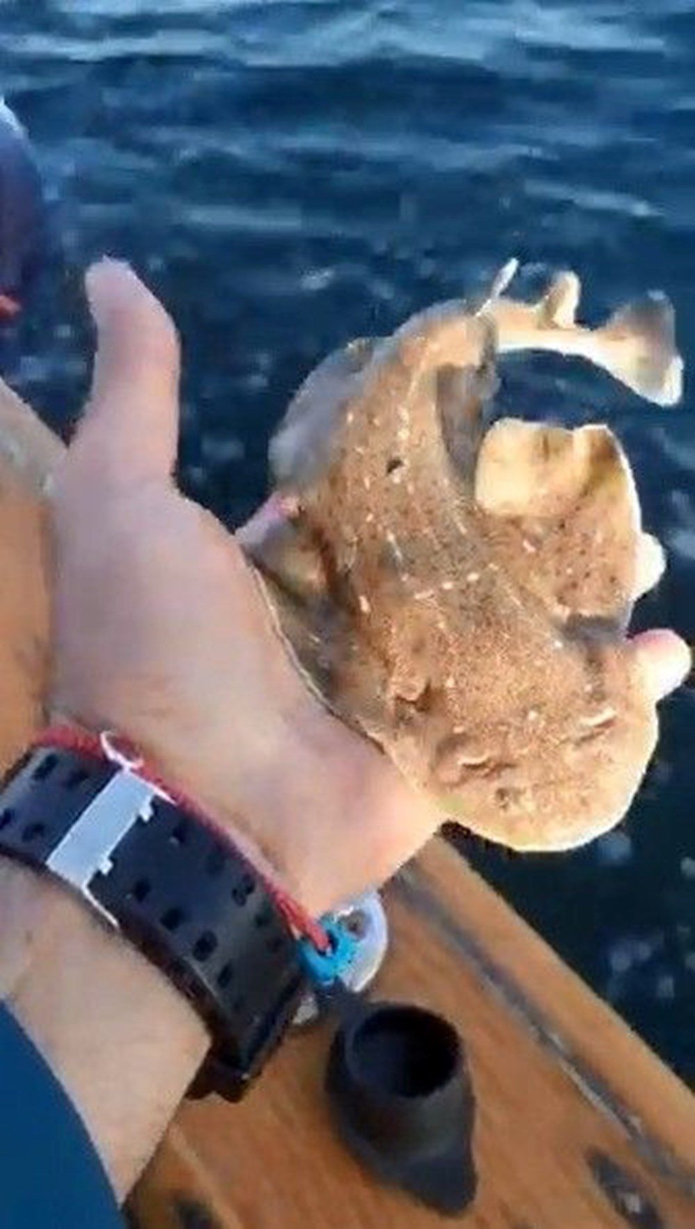 Balıkçılar, tekrar denize salmak istedikleri balığın o sırada doğum yaptığını fark etti.