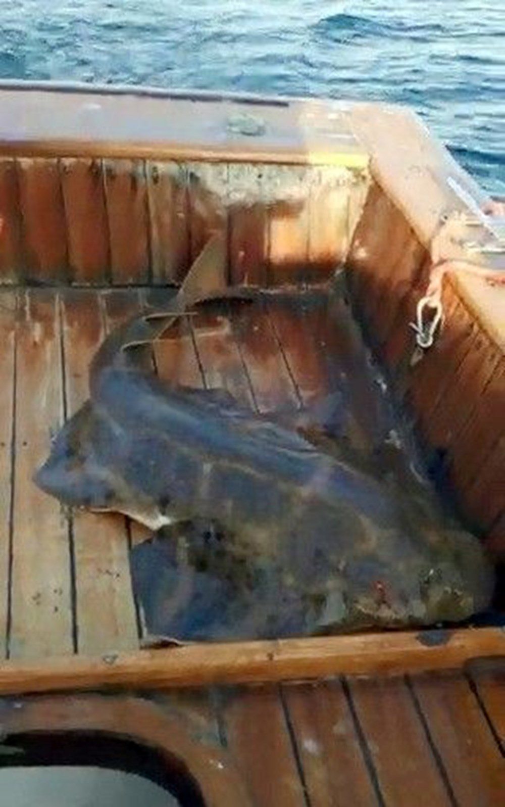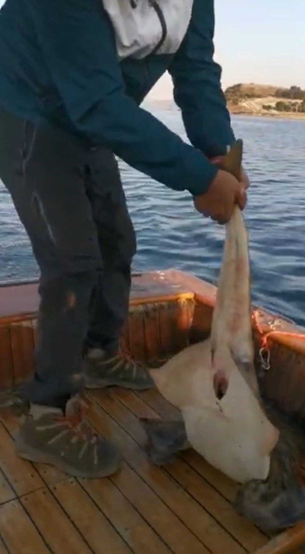 Çanakkale’de sportif balıkçıların yakaladığı nesli tükenme tehdidi altındaki ‘köpekbalığı teknede doğum yaptı.