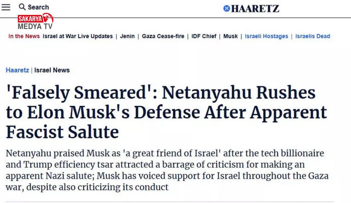 Elon Musk’ın skandal hareketi İsrail basınında da tartışma konusu oldu. İsrailli Haaretz gazetesi hususa değindiği “Netanyahu, Faşist Selamı Verdiği Ortaya Çıkan Elon Musk’ı Savunmaya Koştu” başlıklı haberinde şu tabirlere yer verdi: