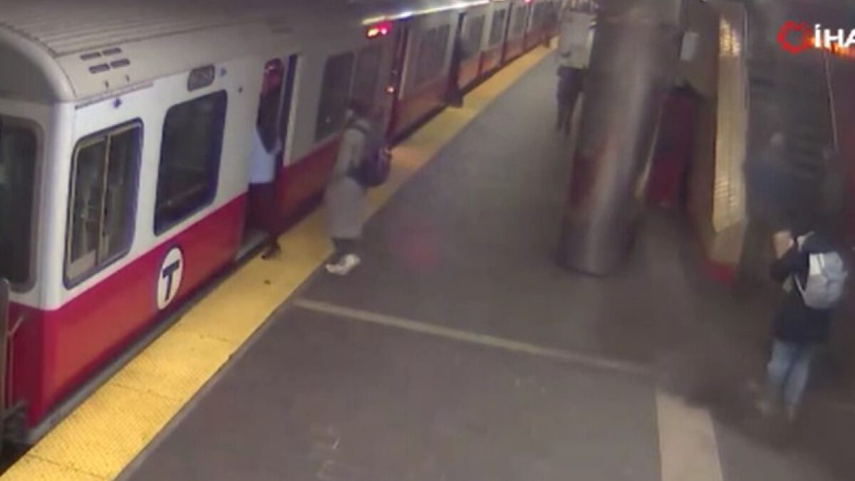 ABD’de metro tavanı, yolcunun hemen önüne düştü