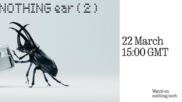Kara öküz böceği ile temsil edilen Nothing Ear (2) tam kablosuz kulaklık modelinde daha iyi ve daha berrak ses kalitesi vadediliyor. Görselde böcek kulaklık kutusunun bir kısmını çekerken yansıtılmış.