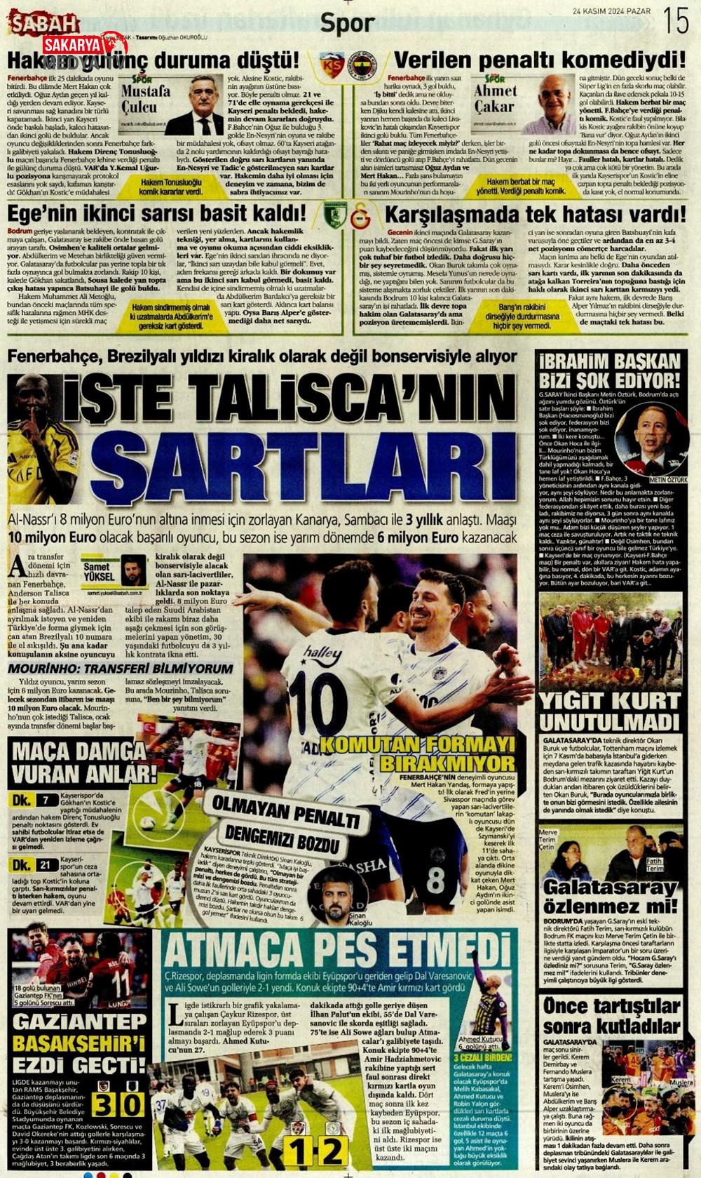 “Fenerbahçe’de Roberto Firmino bombası” (9 Şubat 2025 spor manşetleri)