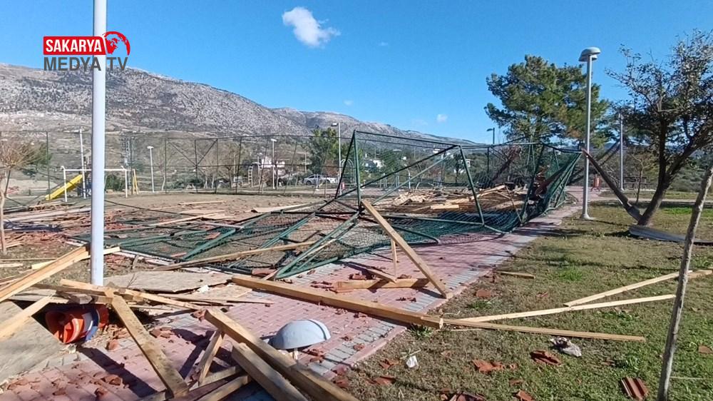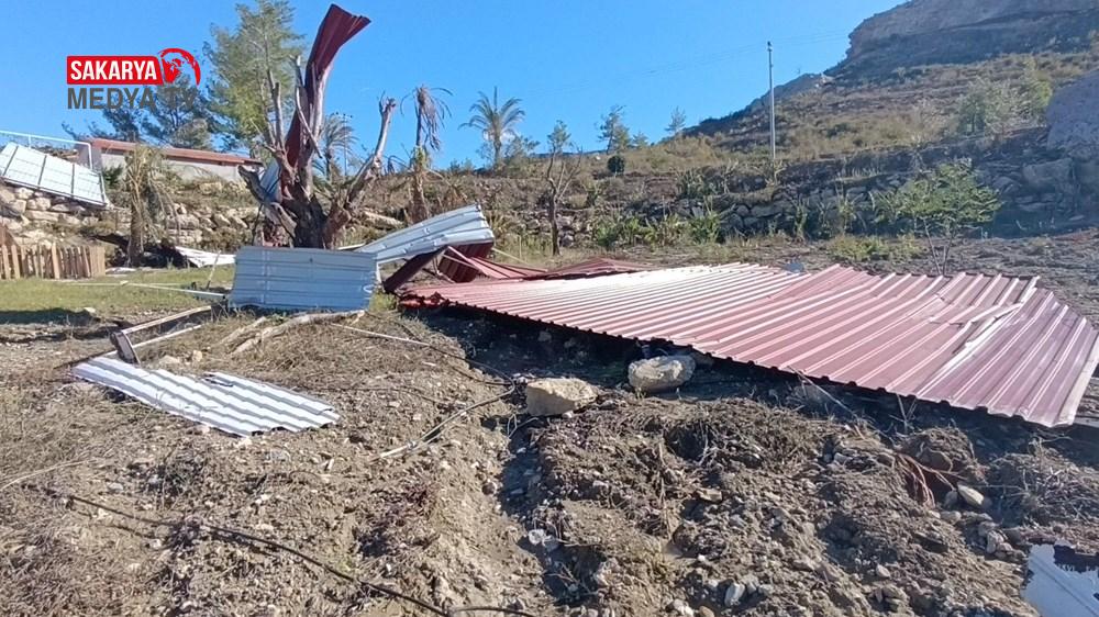 Saat 21.00 sıralarında oldu olay. Evin çatıları uçtu, ağaçlar kökünden devrildi.