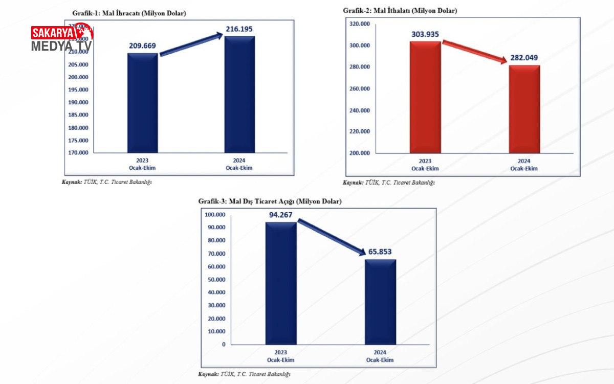 – Dış ticaret açığımız 2024 Ekim ayında tepe noktası olan 2023 Mayıs ayına göre Ekim 2024 itibarıyla yıllıkta tam 44,3 milyar dolar geriledi.