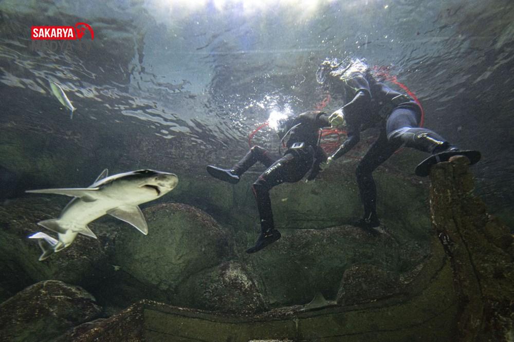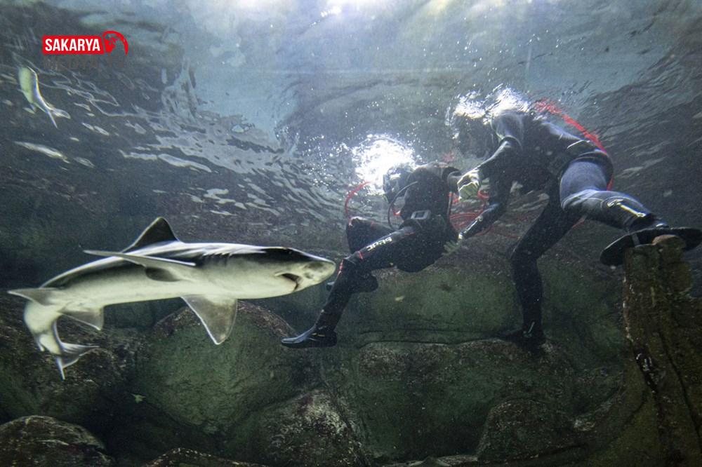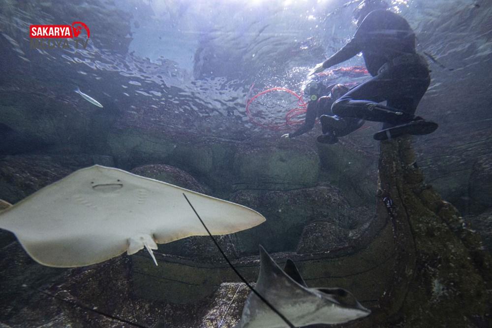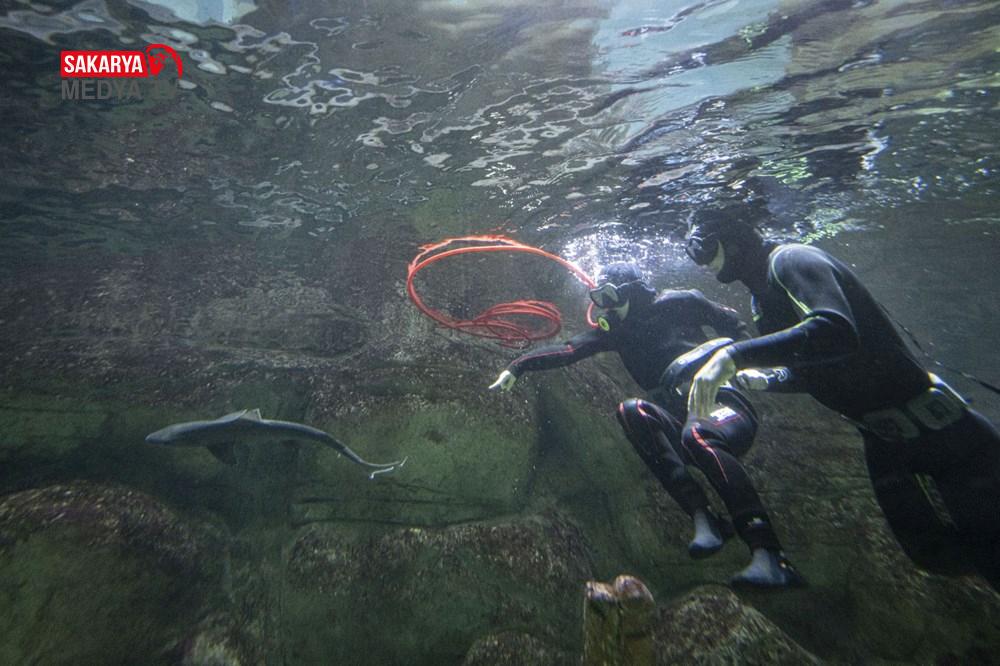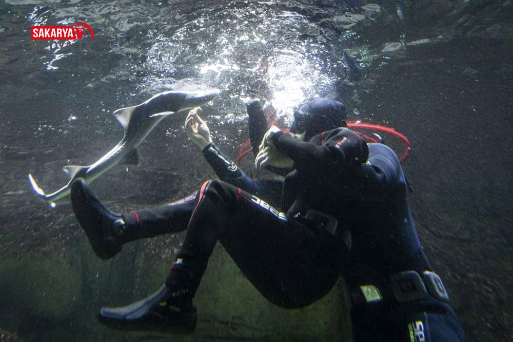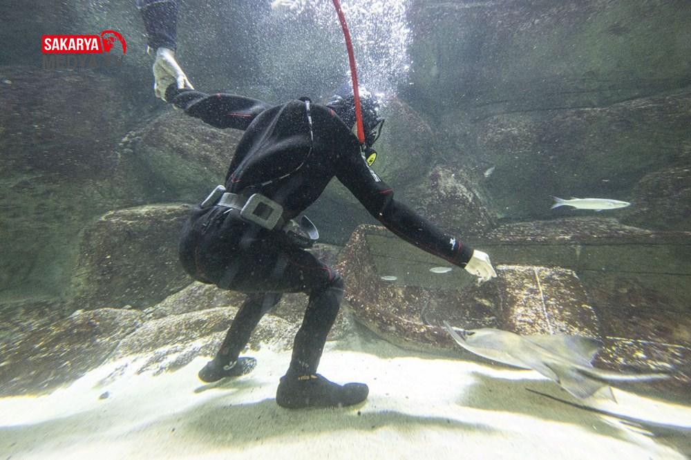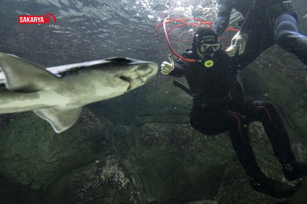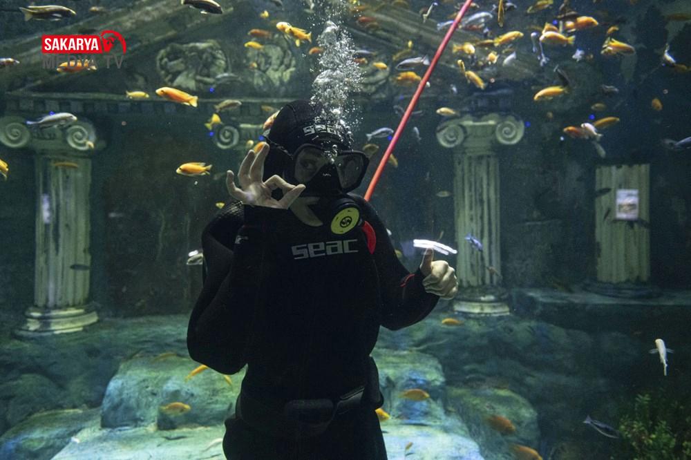 Önce akvaryumdaki teknik işlerden sorumlu olduğunu anlatan Sürek, vakitle dalış yaparak balıkların beslenmesine yardım ettiğini anlattı.