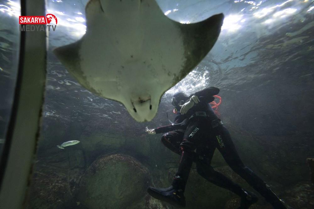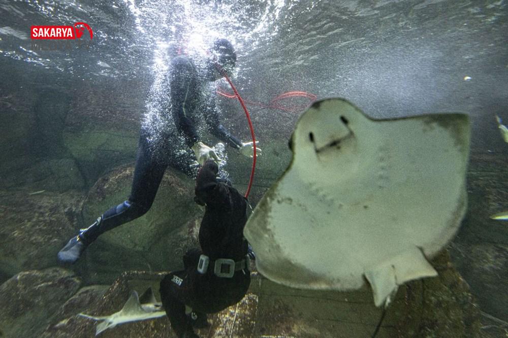 Cüneyt Sürek, hayvanları beslemenin yanı sıra akvaryum temizliğinden de sorumlu olduklarını belirterek, mesleğinin güçlü yanını şöyle anlattı: “Önce hayvanın habitatında olduğunu kabul edeceksin.