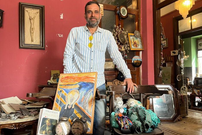 Eski bir plak ile bir yandan müzik dinleyen Sincan bir yandan da deprem nedeniyle zarar gören eşyalarını tadilatını yapıyor. Enkaza rağmen müşterilerinin odağı olan antikacı Sincan, esnaf komşularına, “Gurbet zordur, Antakya’yı terk etmeyin, dükkanlarınızı açın” mesajını verdi.