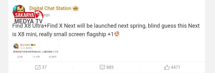 Digital Chat Station tarafından yapılan yeni bir sosyal medya paylaşımı, Find X8 ailesine yeni bir üye daha ekleneceğini ortaya çıkardı. Find X8 Mini olduğu tahmin edilen cihaz, Vivo’nun yakın zamanda piyasaya sürdüğü X200 Pro Mini ile rekabet edebilir. Böylece Oppo da daha küçük bir ekrana sahip olmasıyla birlikte amiral gemisi özellikleri sunan markaların rekabetine katılacak.