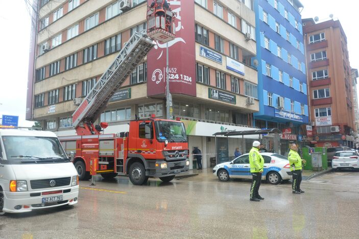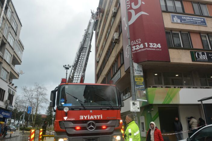 İtfaiye ekiplerinin merdivenle aldığı dış cephe kaplaması sonrası cadde trafiği yerine normale döndürüldü.