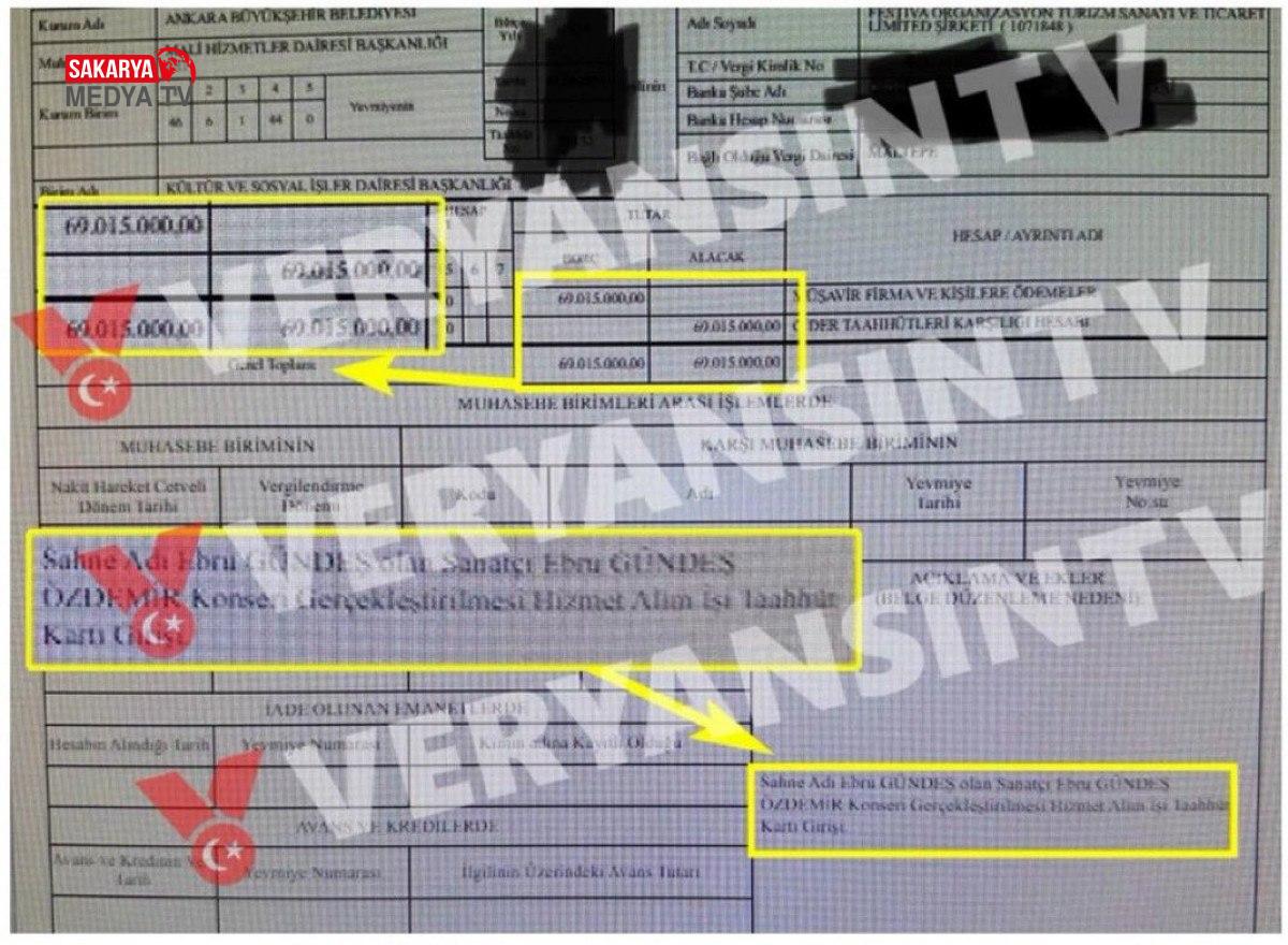 Ankara Büyükşehir Belediyesi’nin, 29 Ekim Cumhuriyet Bayramı kutlamaları kapsamında düzenlenen Ebru Gündeş konserine 69 milyon TL ödediği sav edilmişti.