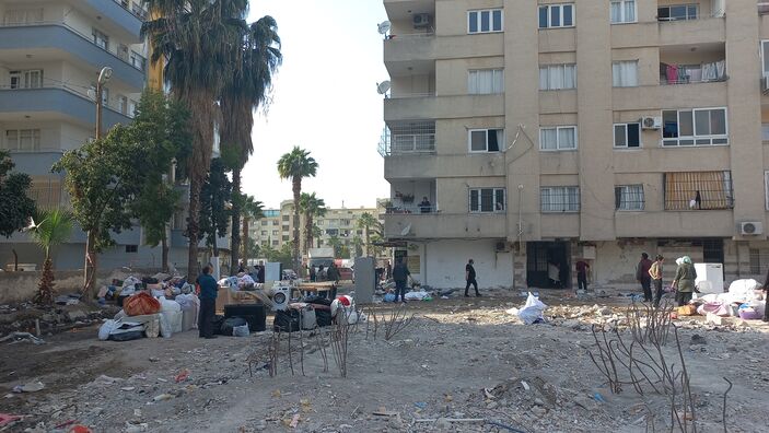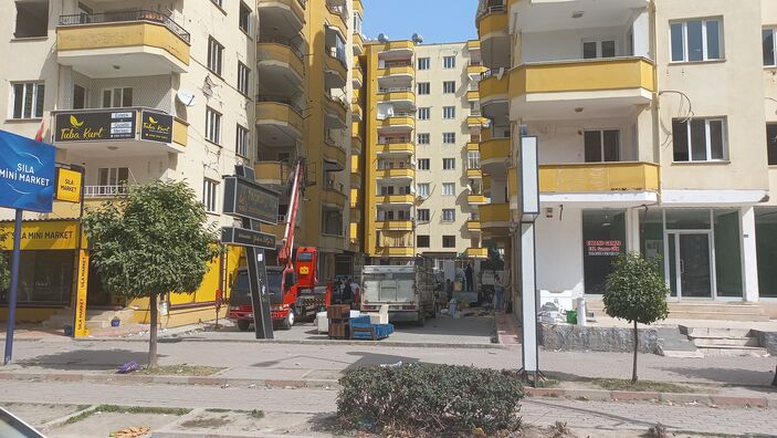 Merkeze bağlı Adnan Menderes Mahallesi’nde bulunan depremde 2 bloku yıkılan Metin Tamer Sitesi ve Sefa Evler Sitesi’nde ağır hasarlı binalara gelen vatandaşlar, dairedeki eşyaları aşağıya indirmek için birbiriyle yarıştı.