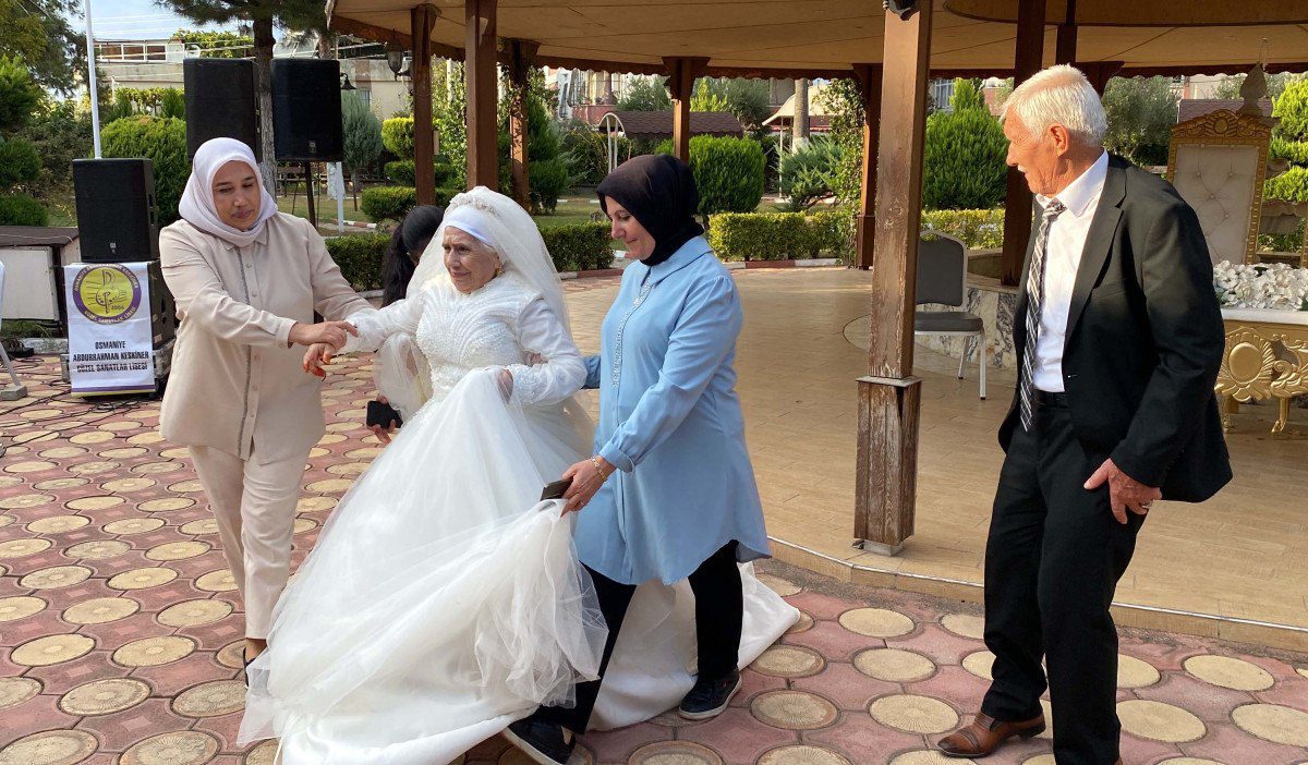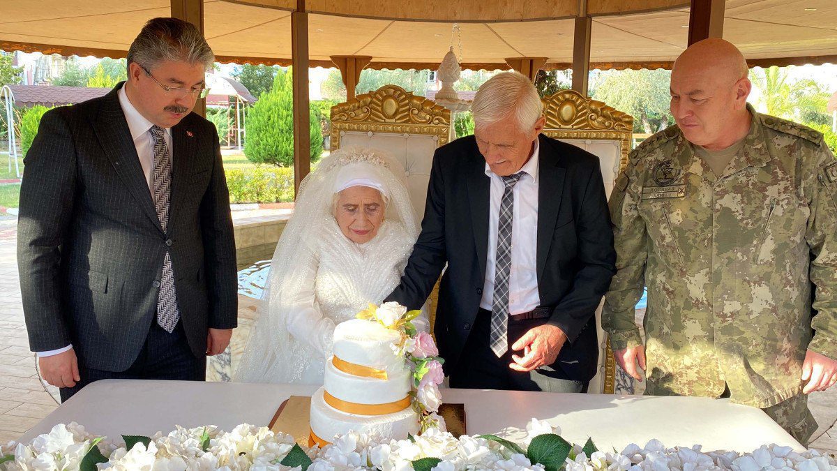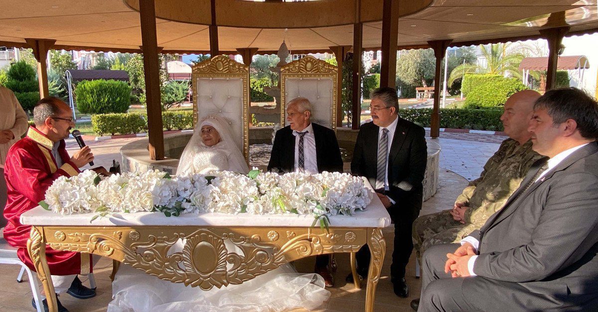 DHA Osmaniye’de huzurevinde tanışıp evlenmeye karar veren Hatice Sağır ile Celil Kurt’un nikah töreni, dün gerçekleştirildi. Huzurevinin bahçesinde yapılan törende gelinlik giyen Hatice Sağır ile Celik Kurt’un nikah şahitliklerini ise Osmaniye Valisi Erdinç Yılmaz, 12’nci Komando Tugay ve Garnizon Komutan Vekili Albay Hakan Kocabaş ile Aile ve Sosyal Hizmetler İl Müdürü Tolga Nacar yaptı.