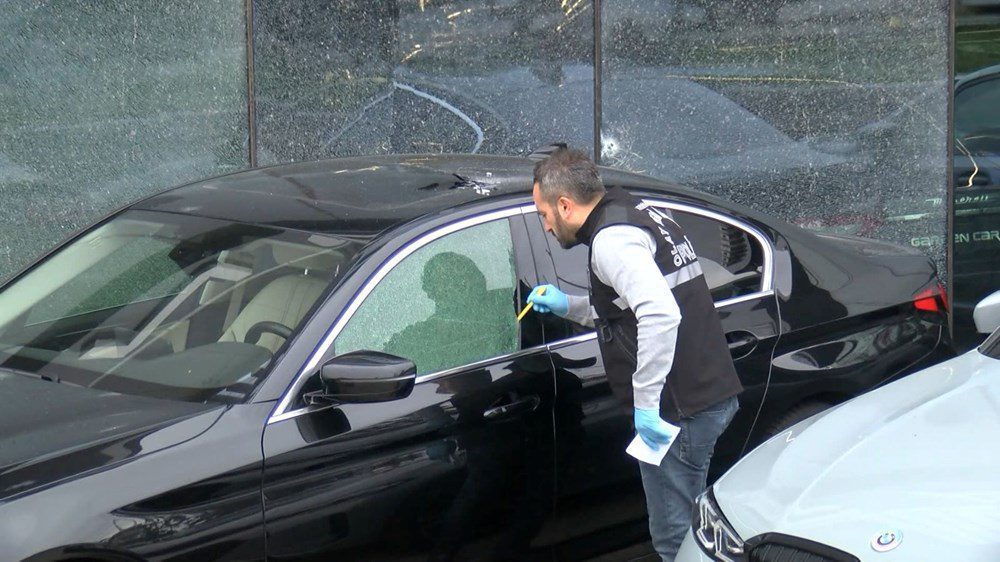 Toplam 8 kurşun izi tespit edilen hücumda polis takımları iş yerinin güvenlik kameralarıı inceledi.