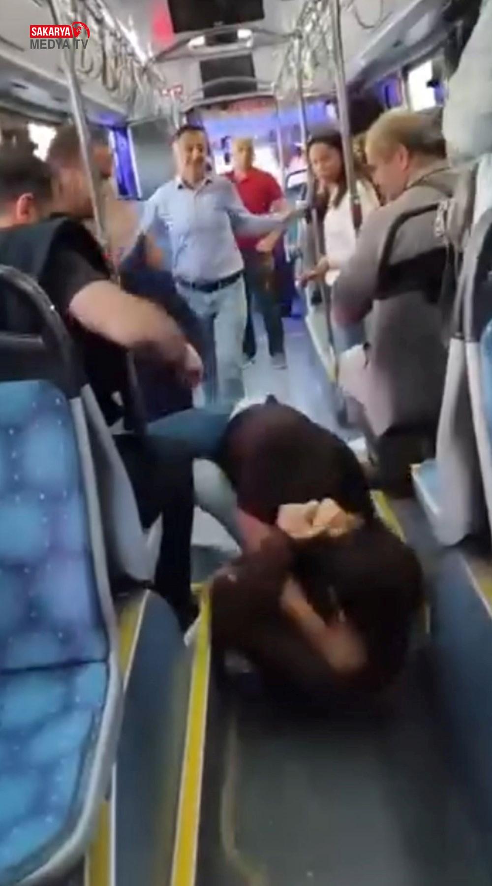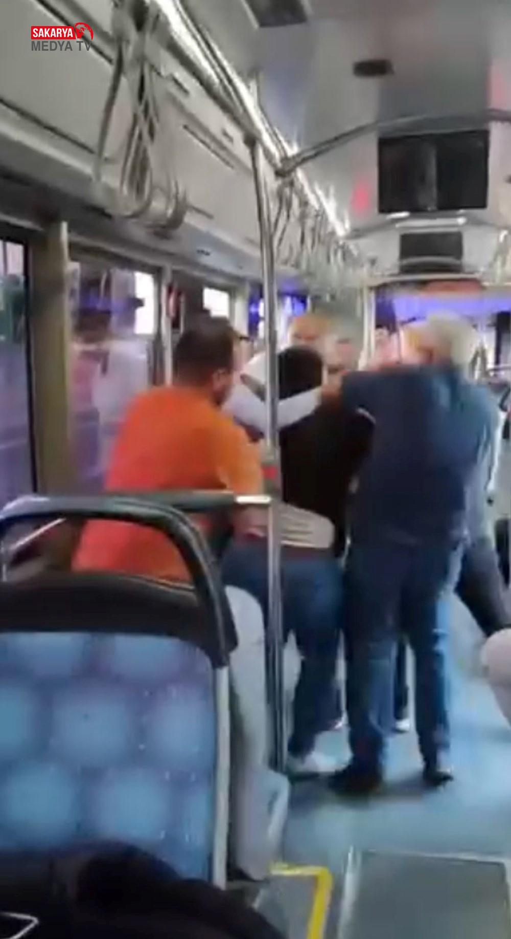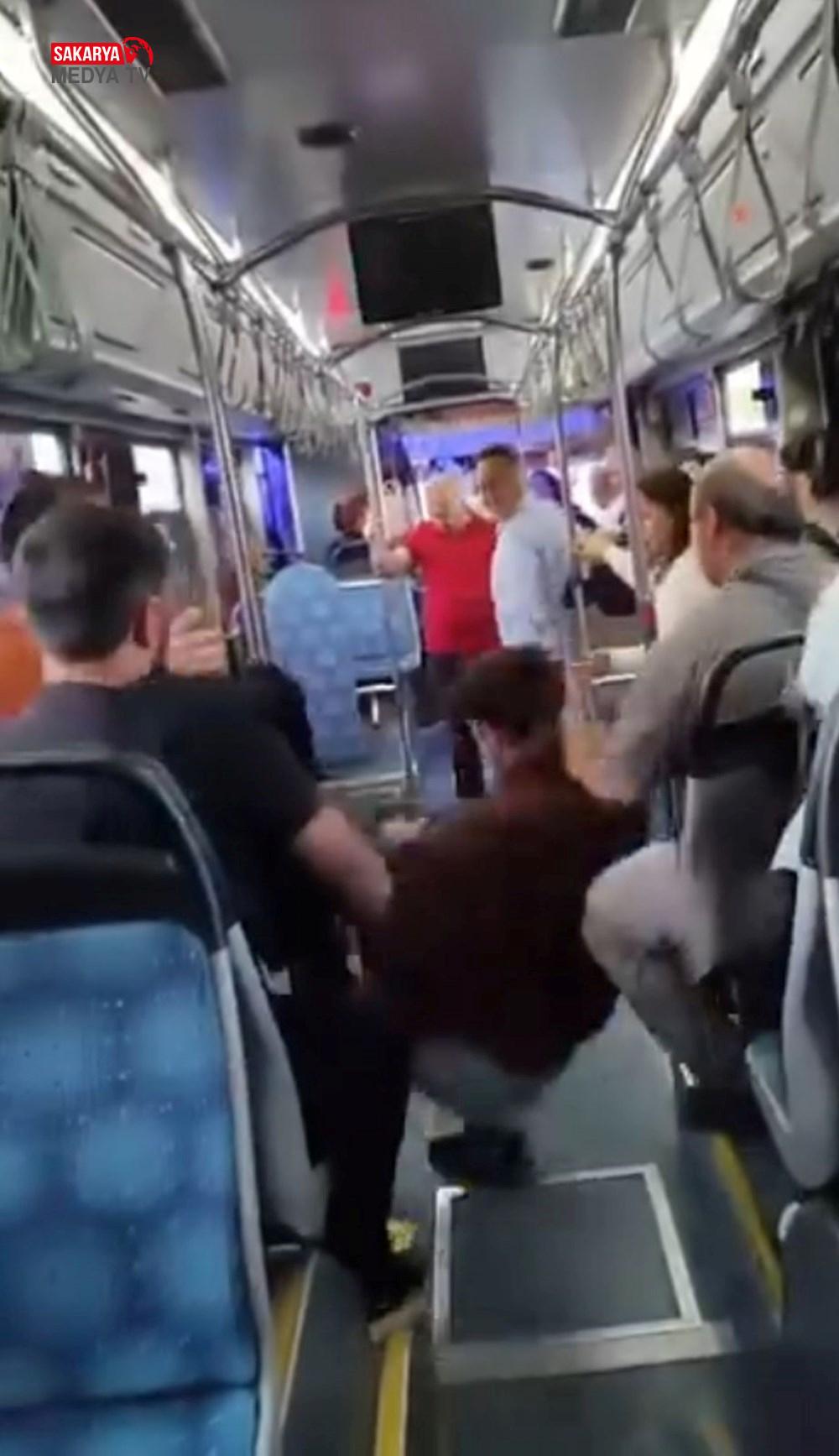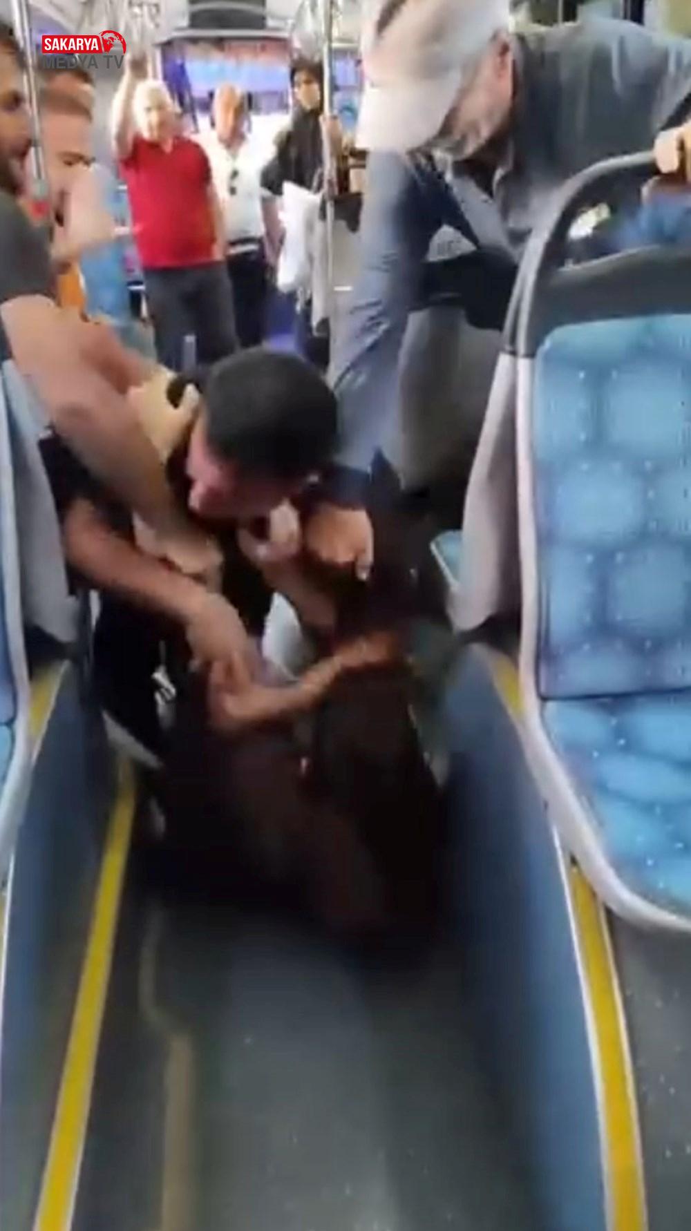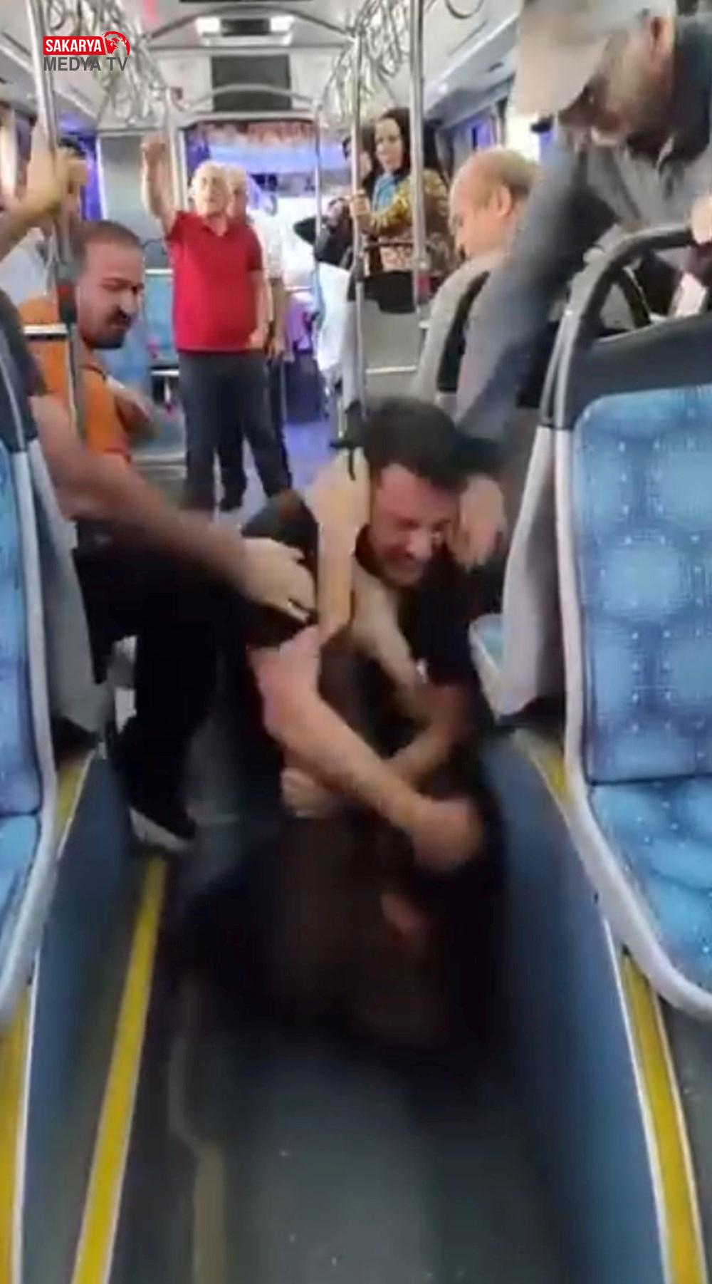 Bu sırada yolculardan biri, çocuğu döven yolcunun üzerine atlayıp yumruklamaya başladı.
