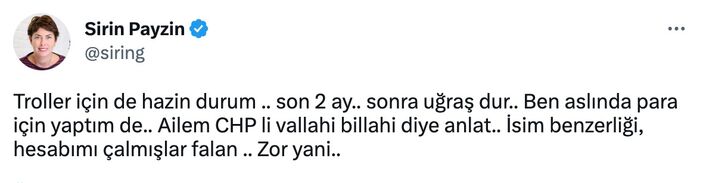 Troller için de hazin durum.. Son 2 ay, sonra uğraş dur. Ben aslında para için yaptım de.. Ailem CHP’li vallahi billahi diye anlat.. İsim benzerliği, hesabımı çalmışlar falan.. Zor yani..
