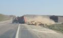 Fazla saman balyası yüklenen traktörün römorku devrildi