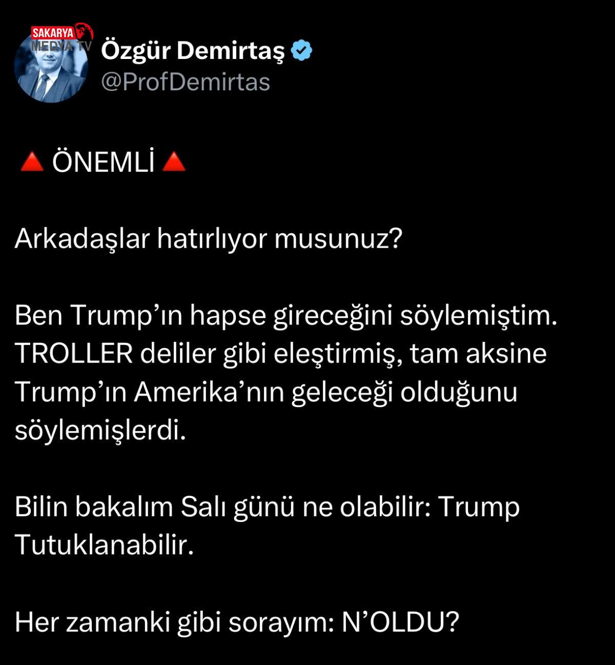 Özgür Demirtaş’a nazaran Donald Trump mahpusa girecekti..