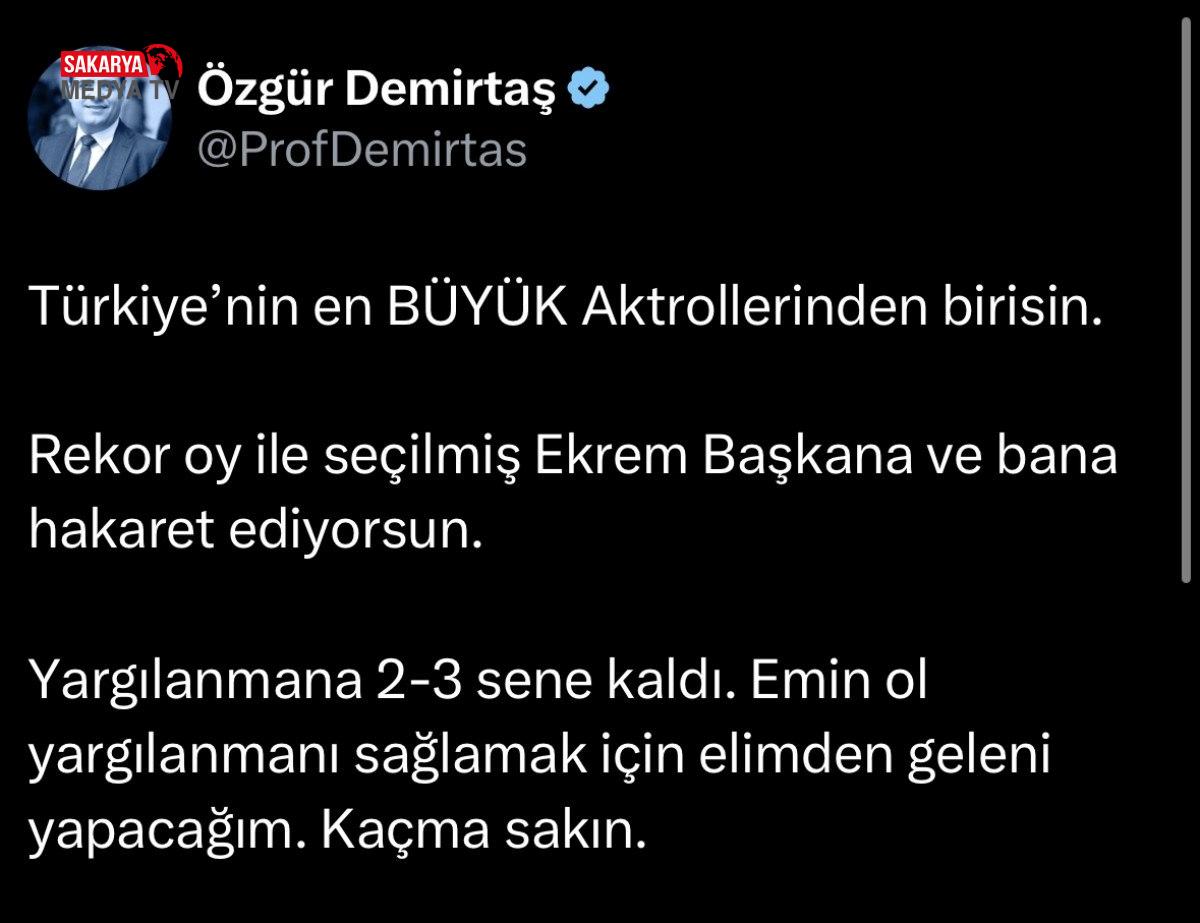 Özgür Demirtaş, vakit zaman toplumsal medyada ‘yargılanacaksın’ diye tehditler de savuruyor..