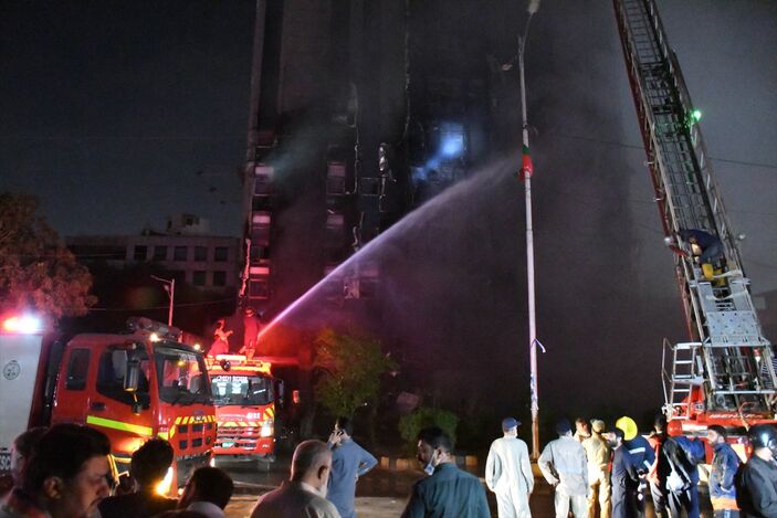 Pakistan’ın liman kenti Karaçi şehrindeki bina alevlere teslim oldu. Sharah-e-Faisal’da Nursery durağının yakınındaki 16 katlı bir binada yangın çıktı.