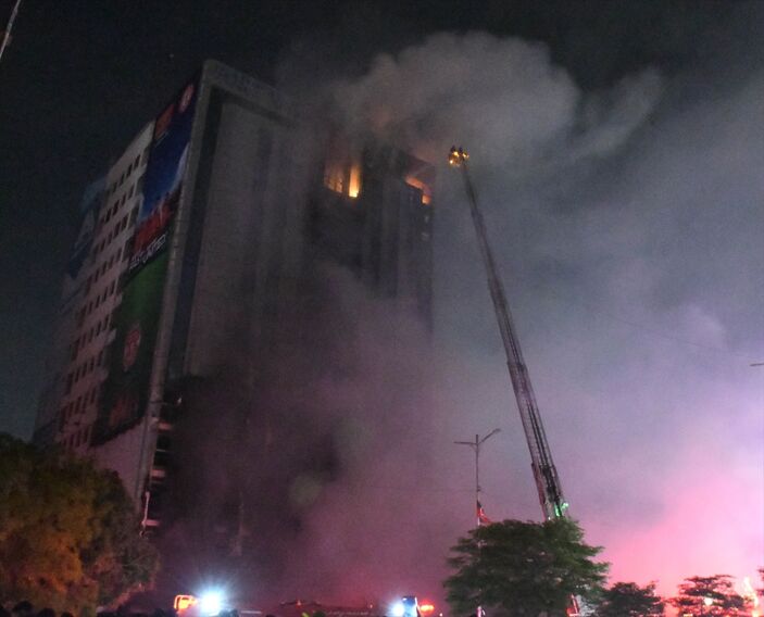Polis, yangının binanın çatı katında bulunan bir reklam panosunda çıktığını ve alevlerin kısa sürede büyümesiyle binayı sardığını söyledi.