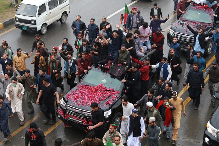 Pakistan Adalet Hareketi (PTI) lideri ve eski Başbakan İmran Han, yabancı kaynaklardan yasaklanmış fon alınması, başbakanlığı döneminde yabancı devlet adamlarından alınan hediyelerin satılması, terör ve cinayete teşebbüsle ilgili yargılandığı davaların duruşmalarına katılmak için Lahor’daki evinden başkent İslamabad’a geldi.