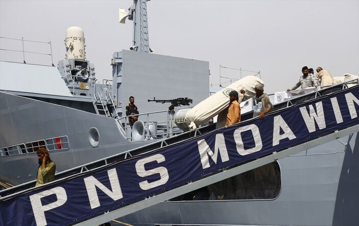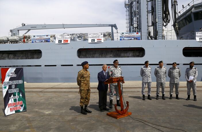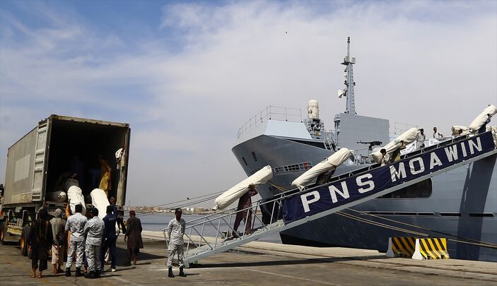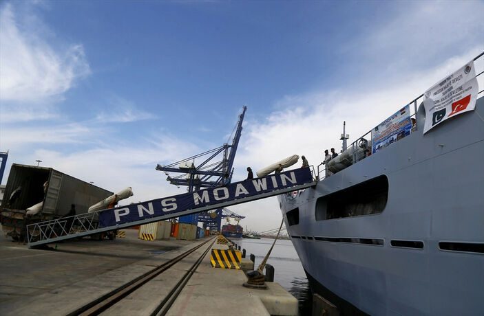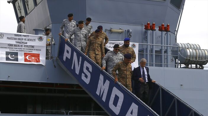 Pakistan Deniz Kuvvetlerine ait ilk gemi, 28 Şubat’ta 1000 ton yardımla Türkiye’ye gönderilmişti.