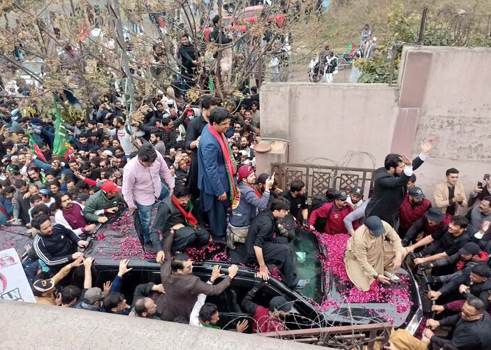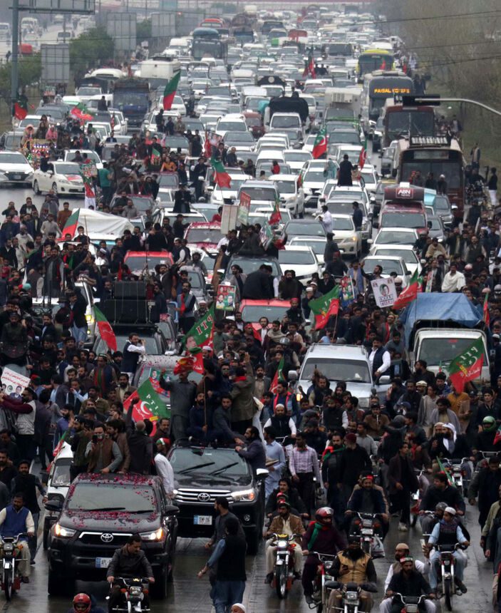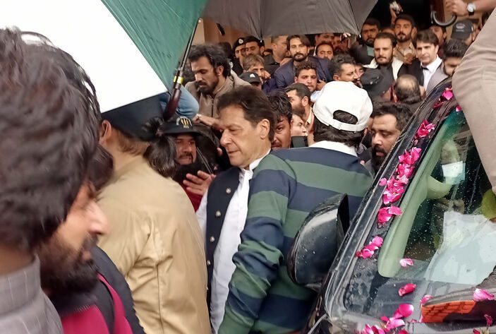 Geçtiğimiz sene kasım ayında bir mitingde bacağından vurulmasından bu yana başkent İslamabad’a ilk kez gelen 70 yaşındaki Khan, sıkı güvenlik önlemleri altında binlerce destekçisi tarafından karşılandı.