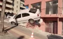 Çorum’da Park Halindeki Otomobil Dükkanın Merdivenlerine Çıktı