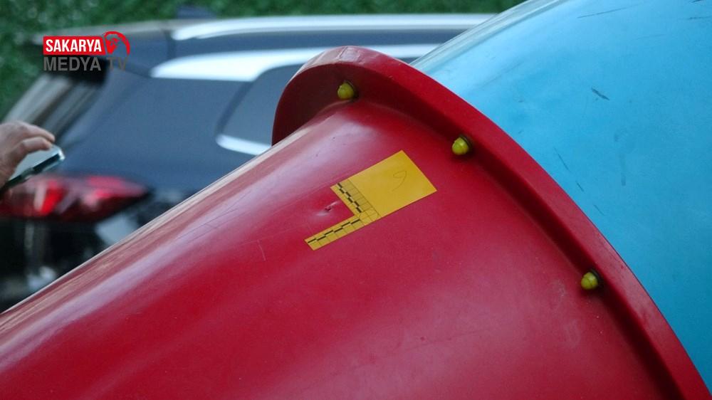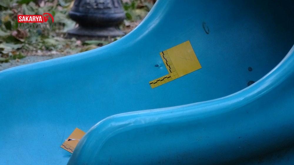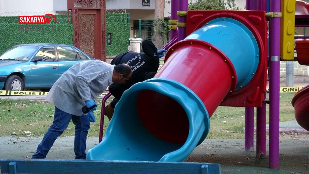 Parktaki kaydırakta da saçma izleri olduğu belirlendi. Gruplar olay yerinde kanıt çalışması yaptı.