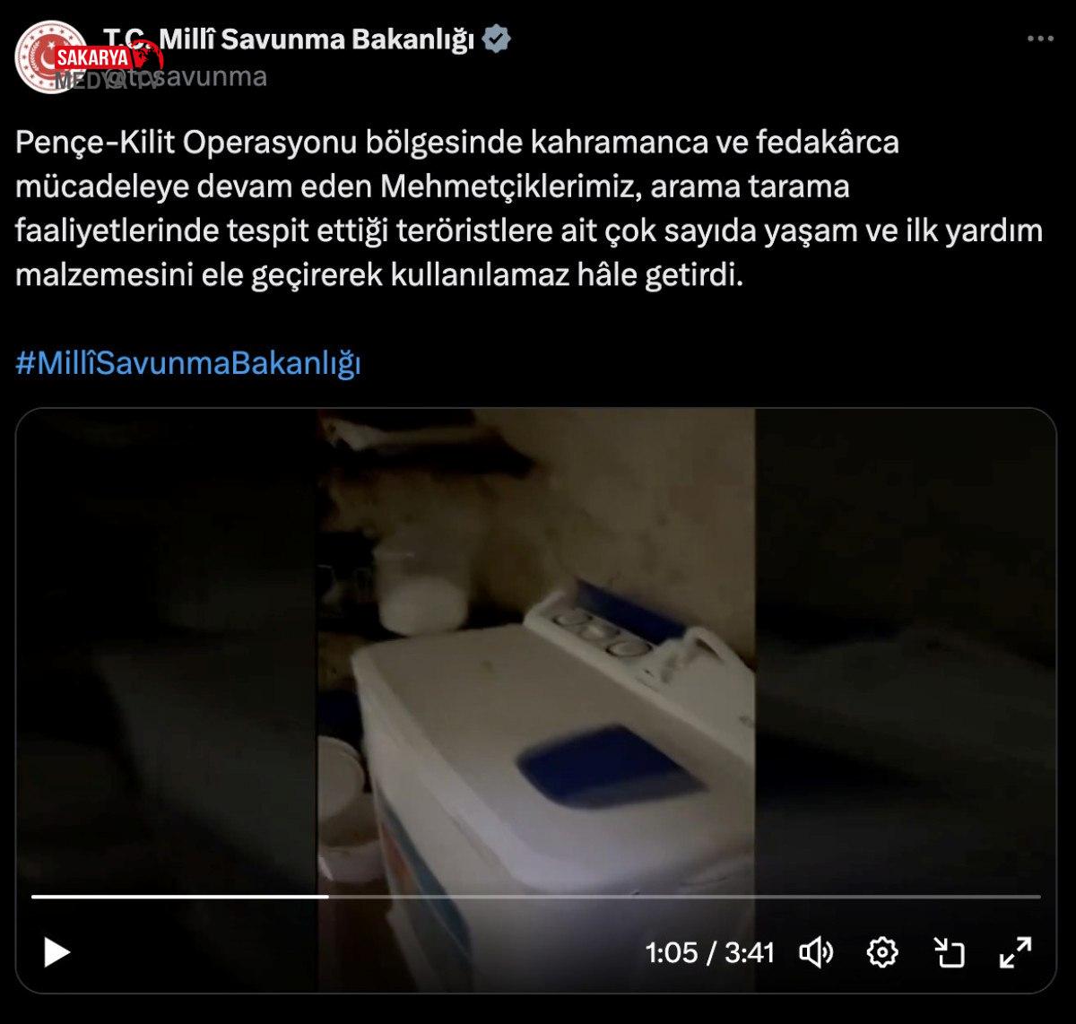 Milli Savunma Bakanlığı (MSB), terör örgütü üyelerinin inlerine kadar girilen görüntüleri paylaştı.