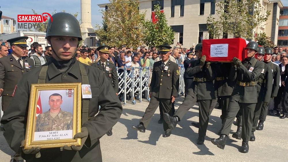 Daha sonra şehit Alan’ın tabutu, askerler tarafından konulduğu top arabası ile kortej eşliğinde cenaze aracına alındı.