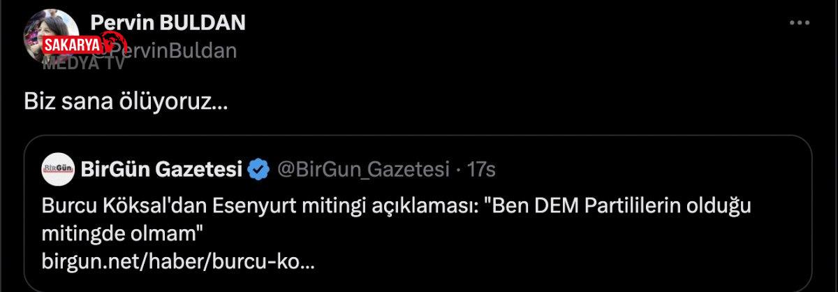 Buldan, Köksal’ın açıklamalarının olduğu paylaşımı alıntılayarak “Biz sana ölüyoruz…” yanıtını verdi.
