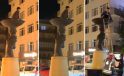 İddiayı kazandı ama mahsur kaldı: Heykele çıkan genci itfaiye kurtardı
