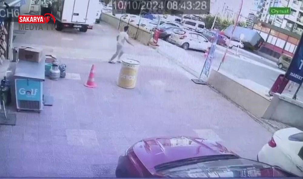 Bir hafif ticari araçta da hasara neden olan kaza, çevredeki iş yerinin güvenlik kamerasınca kaydedildi.