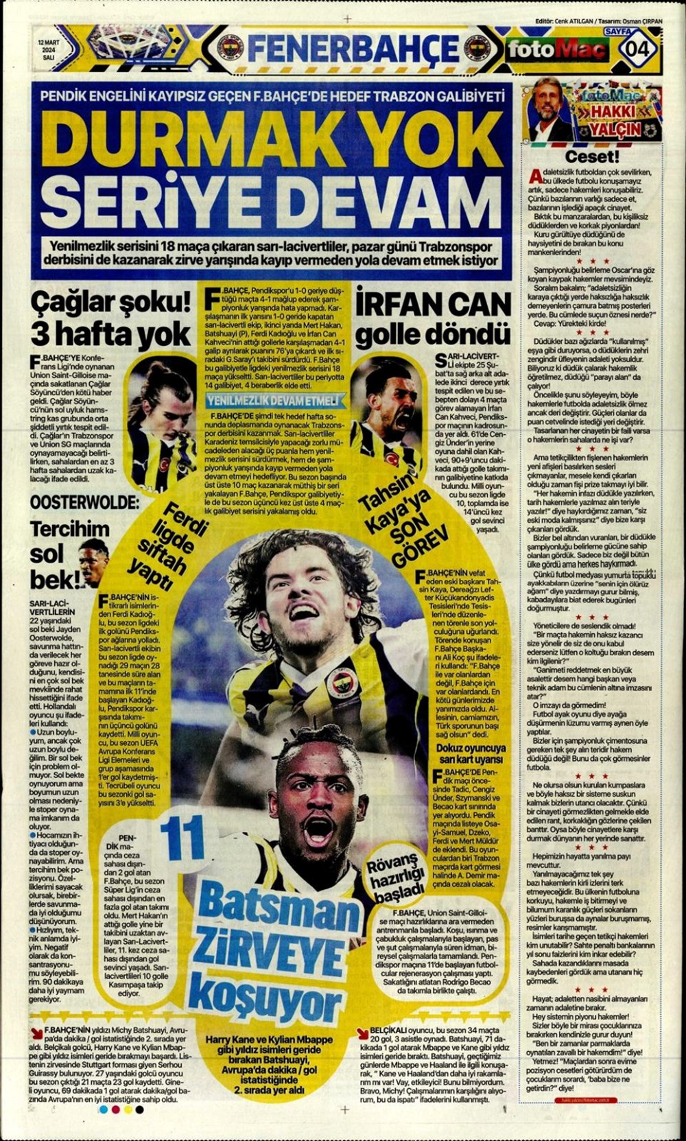 “Fenerbahçe’de Roberto Firmino bombası” (9 Şubat 2025 spor manşetleri)