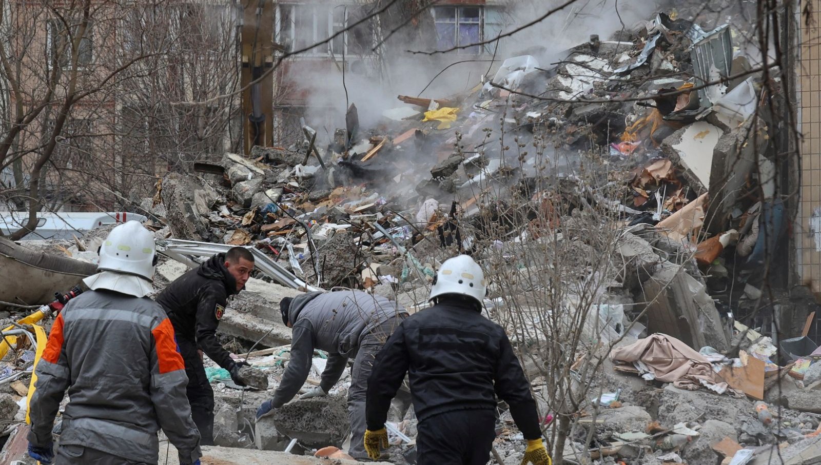 Acil servis grupları enkazı temizlerken Ukrayna İçişleri Bakanı Igor Klimenko, “Rus teröristlerin saldırısı sonucu dokuz katlı bir bina yıkıldı” tabirini kullandı.