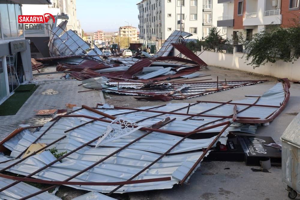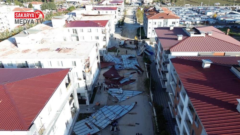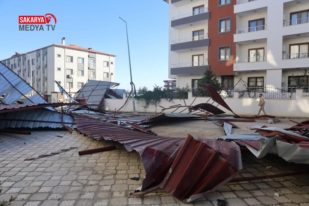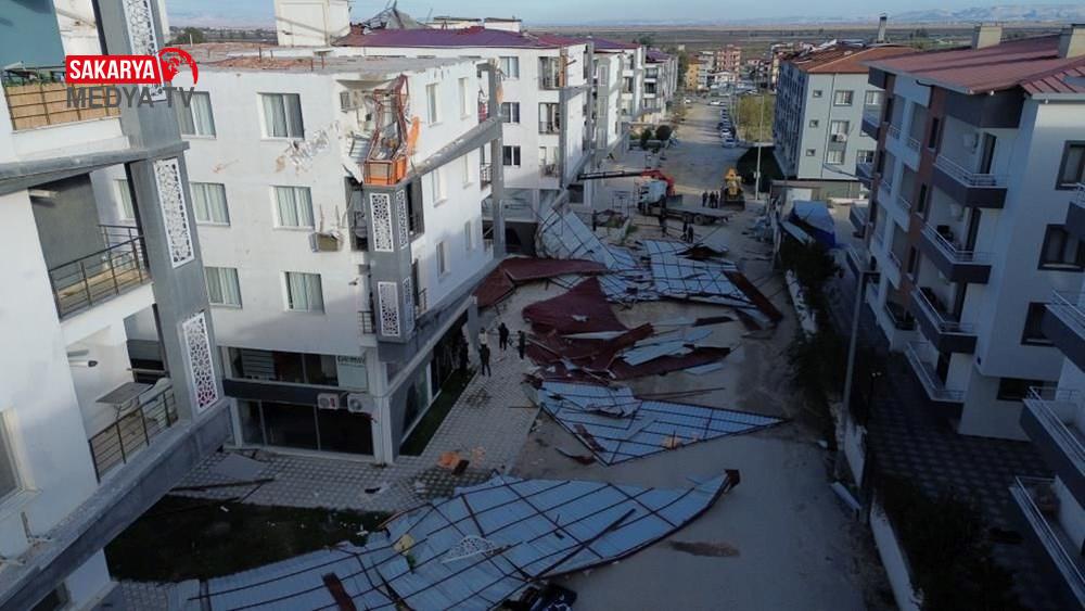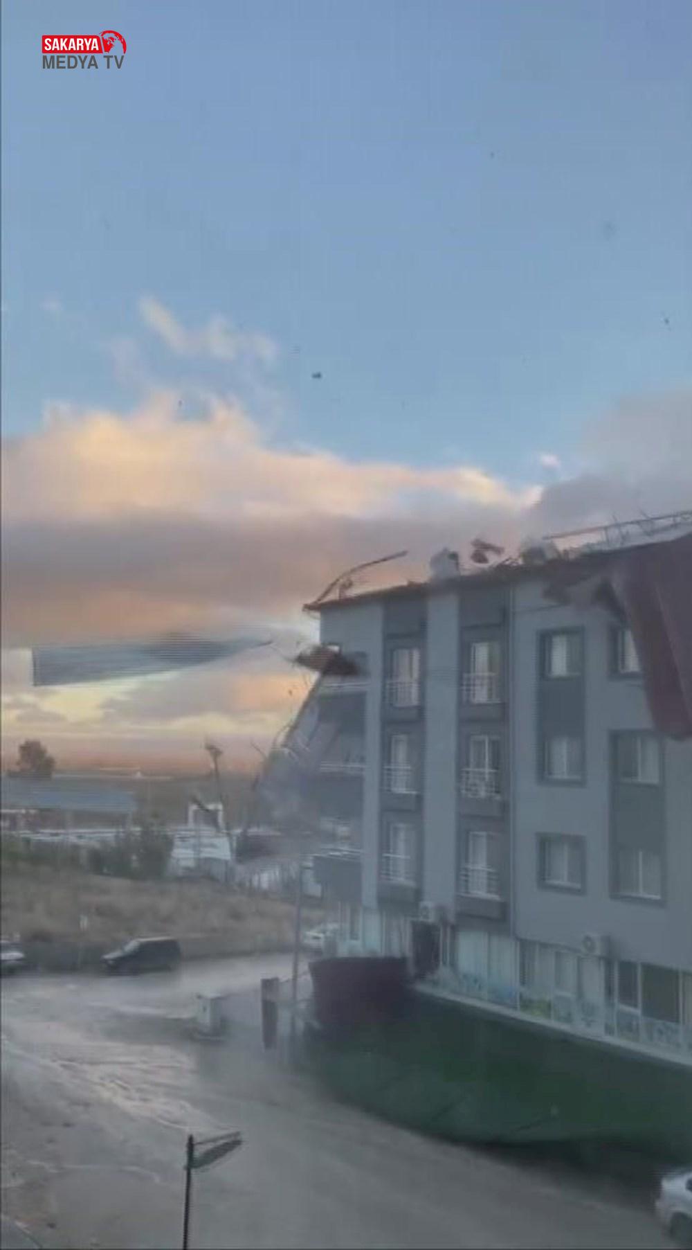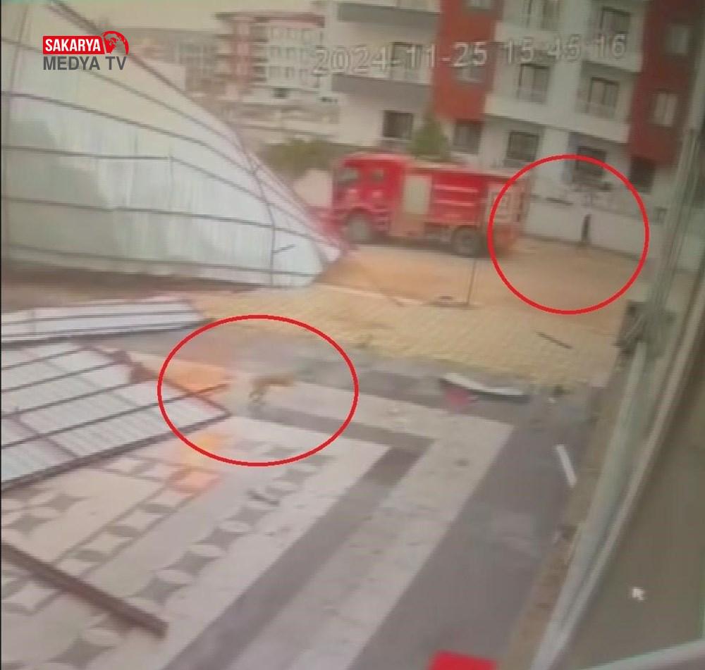 Görüntülerde, üzerine çatı gelen bir vatandaşın çatıdan koşarak kurtulduğu görüldü.