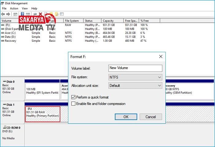 Çözüm 2. Sabit Sürücüyü NTFS’ye Biçimlendir – RAW veya Bozuk Dosya Sistemiyle Algılanmayan Sabit Diski Düzeltme