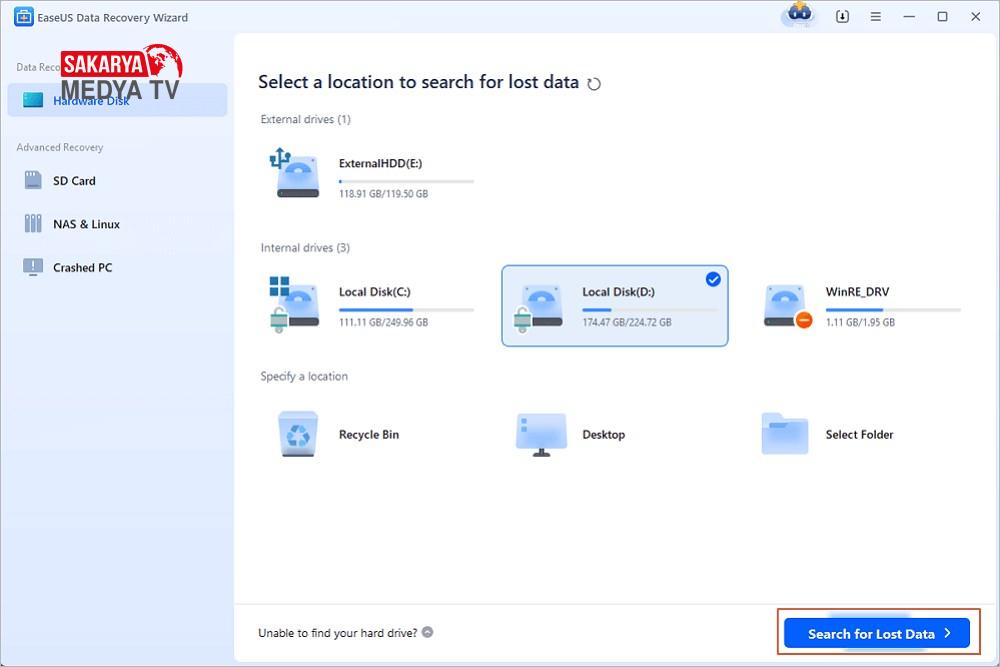 Güvenilir EaseUS Data Recovery Wizard, tüm sabit sürücü dosyalarınızı, Fix 3 Part 1’de gösterildiği gibi yalnızca 3 adımda geri yüklemenize yardımcı olabilir.