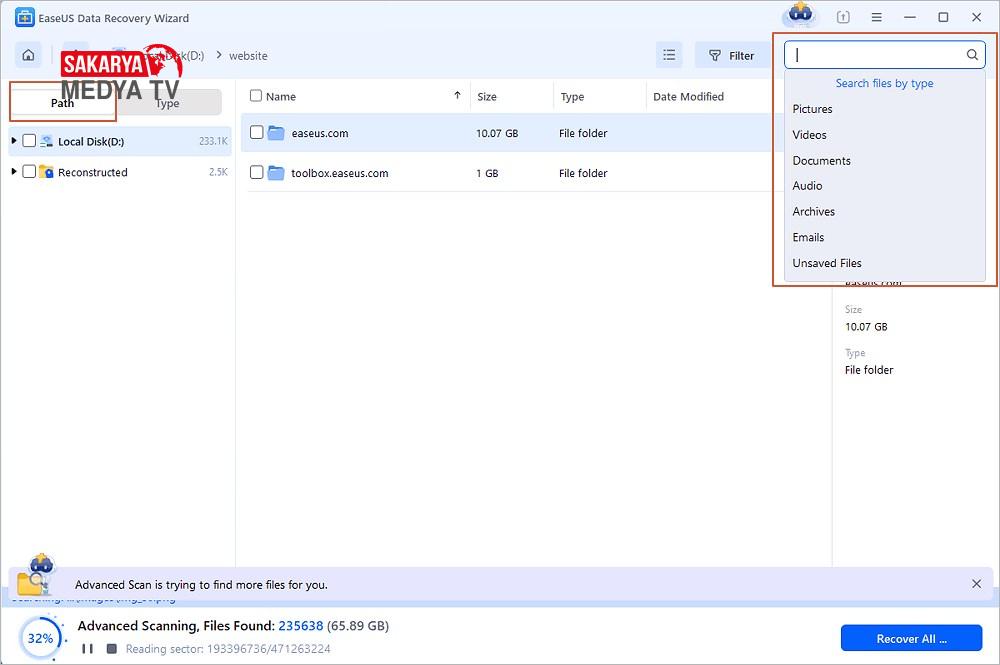 Adım 1. Sabit sürücüden gizlenmiş veya kaldırılmış dosyaları kurtarın.