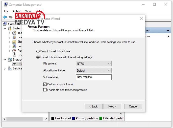 2. Sabit Sürücüyü Algılanabilir Hale Getirmek için Yeni Bir Bölüm Oluşturun