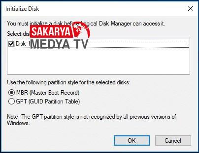 1. Diski Başlatın ve Yeni Sabit Sürücüde Birim Oluşturun