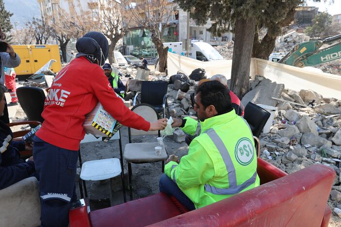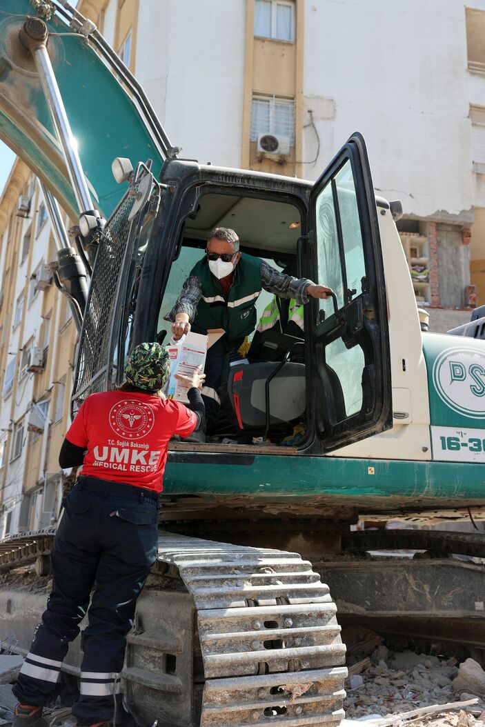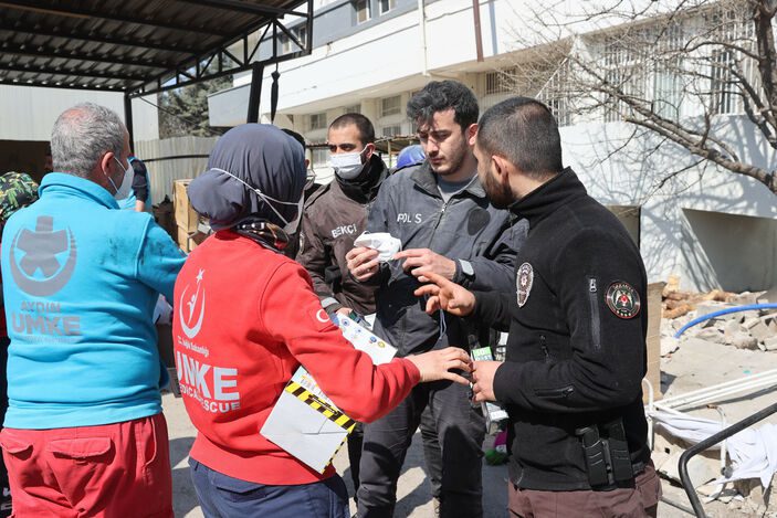 Enkaz kaldırma ekipleri Sağlık Bakanlığına dağıtmış oldukları maskeler için teşekkür ederken, çalışma sırasında aldıkları maskeleri çıkartmayacaklarını ifade ettiler.
