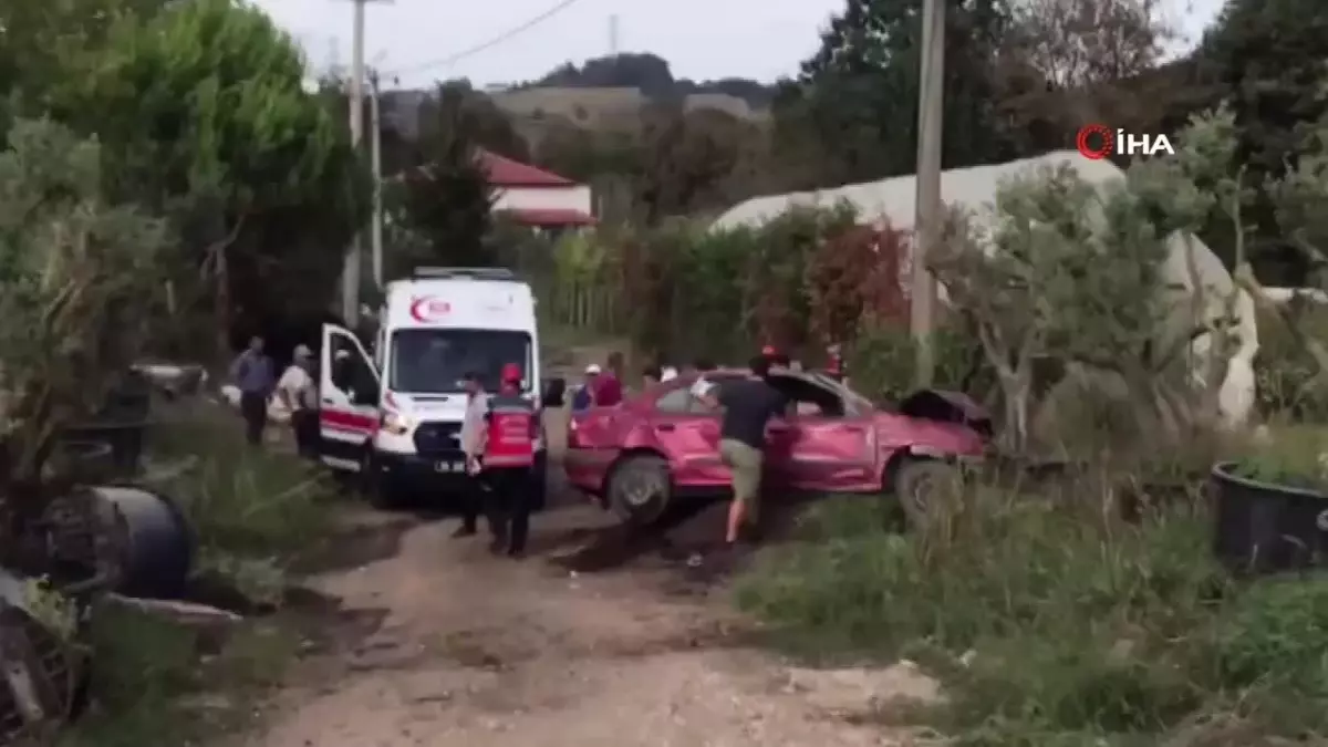 Kontrolden Çıkan Araç Fidanlığa Uçtu: Sürücü İtfaiye Tarafından Kurtarıldı