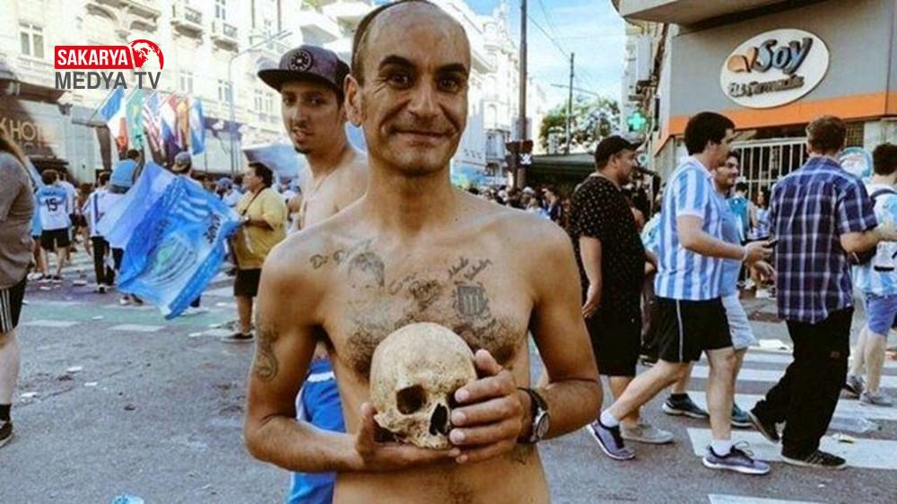 Racing Club taraftarı, 5 yıl önce Arjantin Süper Ligi’nde takımının şampiyon olduğu maç sonrası dedesinin kafatasıyla şampiyonluk kutlamalarında görüntülenmişti.