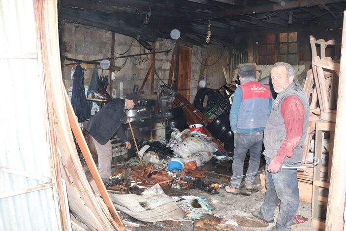 Sobanın patlamasıyla etrafa saçılan kıvılcımlar çevrede bulunan tahtaları ve kartonları yaktı.