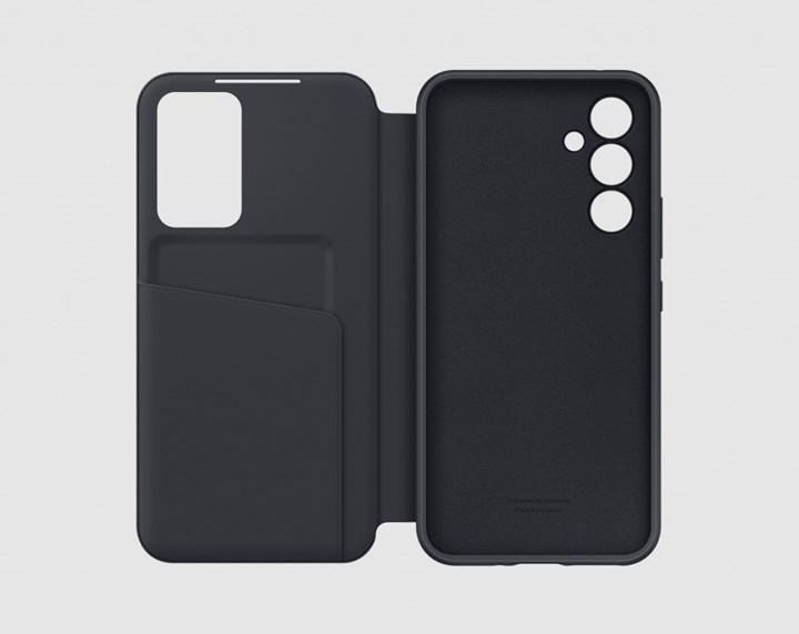 Galaxy serisindeki Smart View kılıfları bilindiği üzere minik bir boşluk bırakarak ekranın bu kısmında her zaman açık özelliklerinin yansıtılmasını sağlıyor. Galaxy A54 Smart View kılıfında da sağ üst kısımda her zaman açık ekran boşluğu yer alıyor.