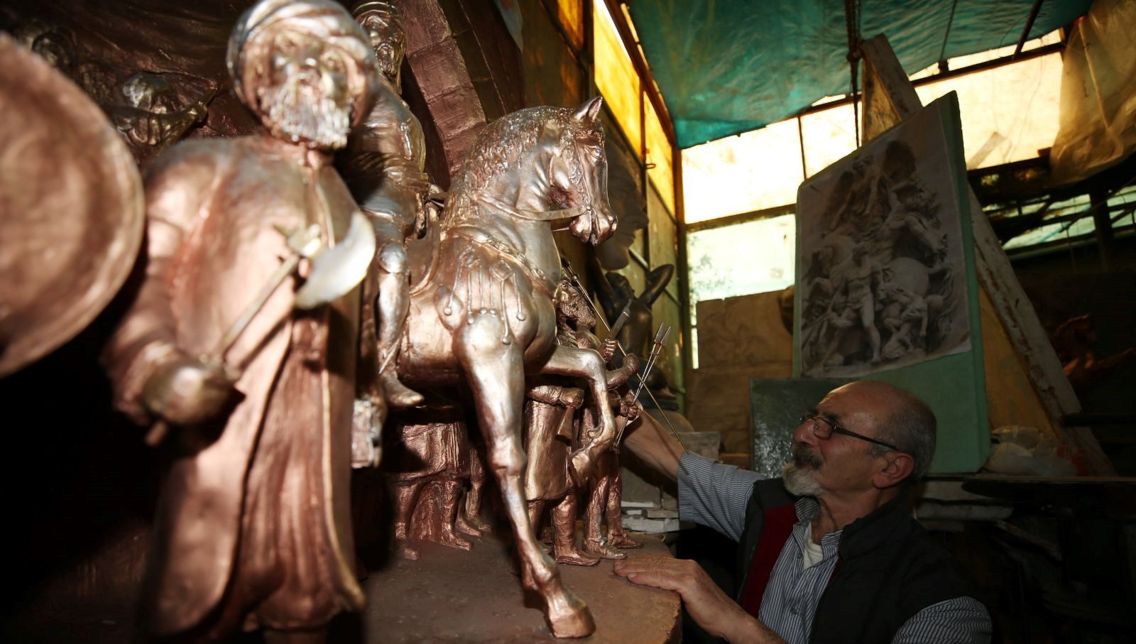 Hataylı heykeltıraş depremde az hasar gören Fatih Sultan Mehmet’in heykelini bitirmeye çalışıyor